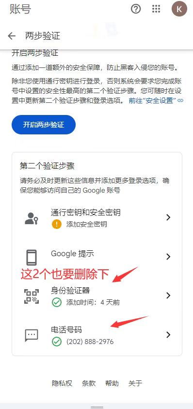 要删除 2 次验证的手机号和谷歌验证器。